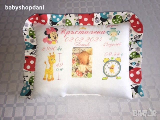 ВЪЗГЛАВНИЧКИ бебешка ВИЗИТКА сублимация вкл снимка персонализирани