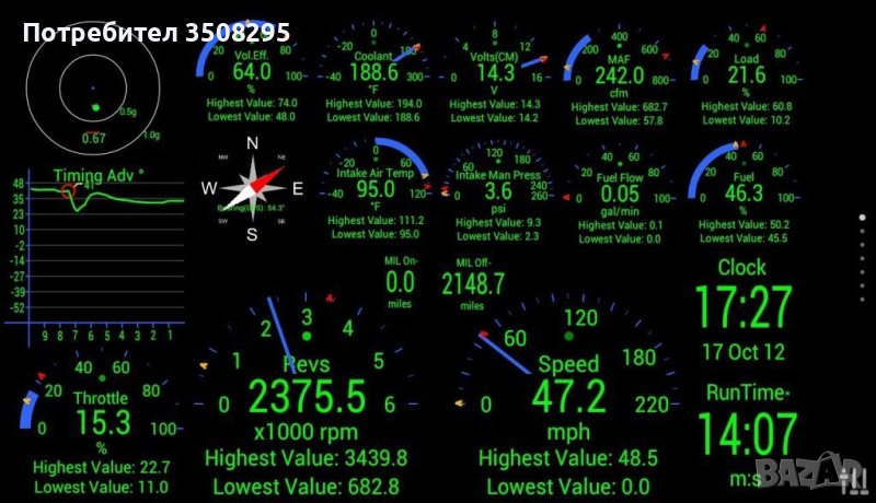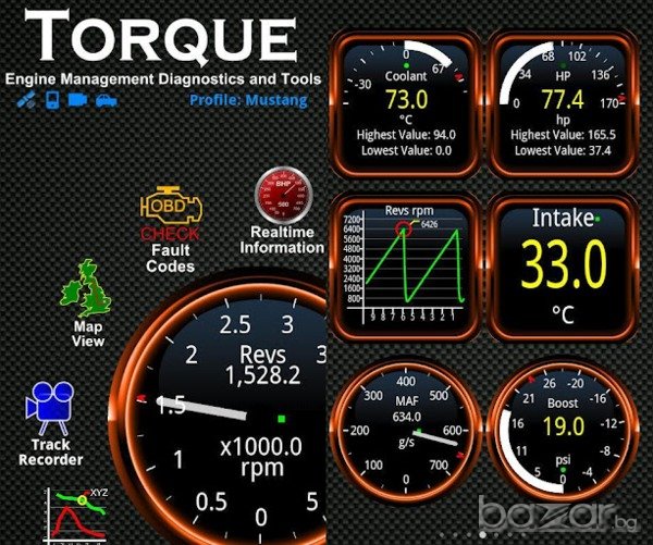 Имате възможността да откривате неизправности по автомобила, да ИЗТРИВАТЕ НАТРУПАНИ ГРЕШКИ, да следите в реално време данните от автомобила (броят сензори е различен при различните автомобили). Може да имате моментен достъп до оборотите на двигателя, скоростта на автомобила, среден и моментен разход на гориво, средна скорост, изминато разстояние, температура на маслото, температура на двигателя, оставащите километри до свършване на горивото, моментна мощност на автомобила (в HP) и още много много други.