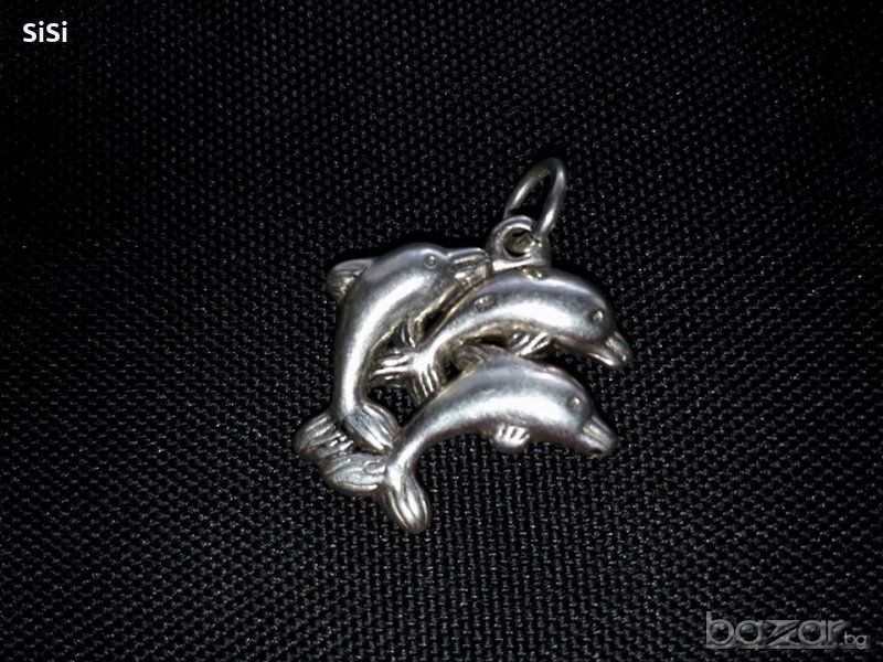 Сребърна висулка делфини 2,5см х 2,5 см