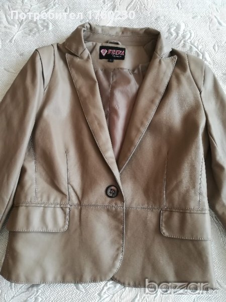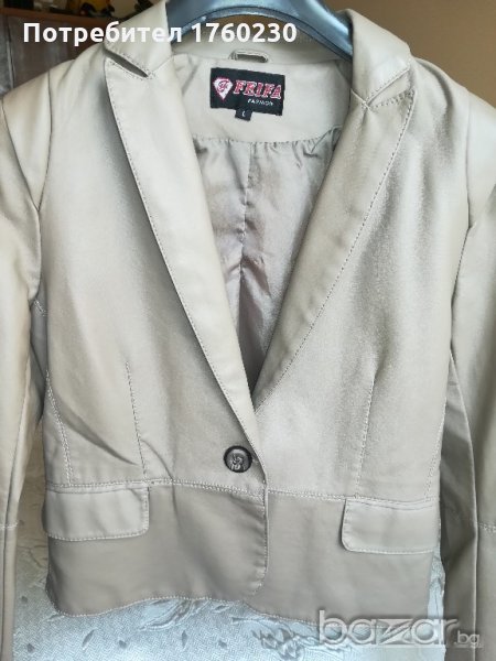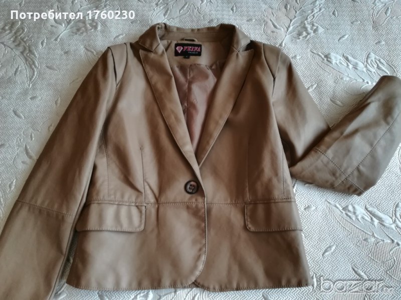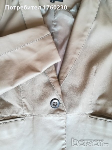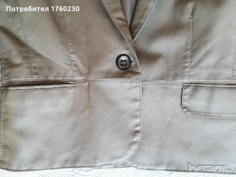 Продавам късо, вталено кожено сако. Материята е изключително мека кожа и хастар. Цвят - бежов. Сакото е с ревер яка и има два джоба с филетки и капаци, които могат да се прибират вътре в тях. Изключително подходяща дреха за пролет, лято и есен.