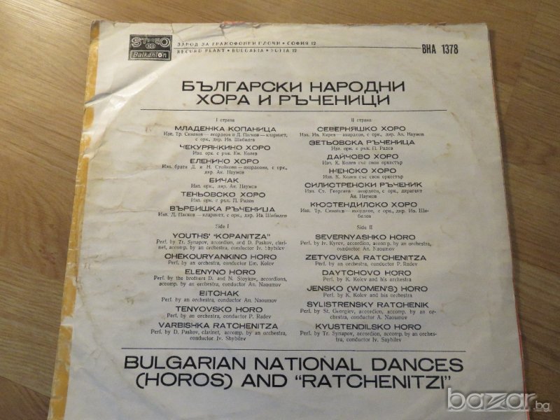 Рядка Грамофонна плоча Български народни хора и ръченици .изд.70те г