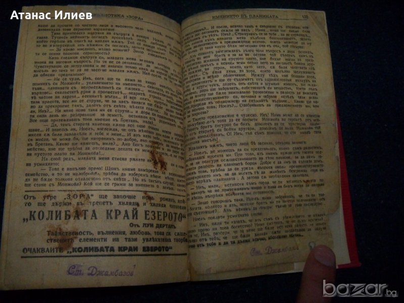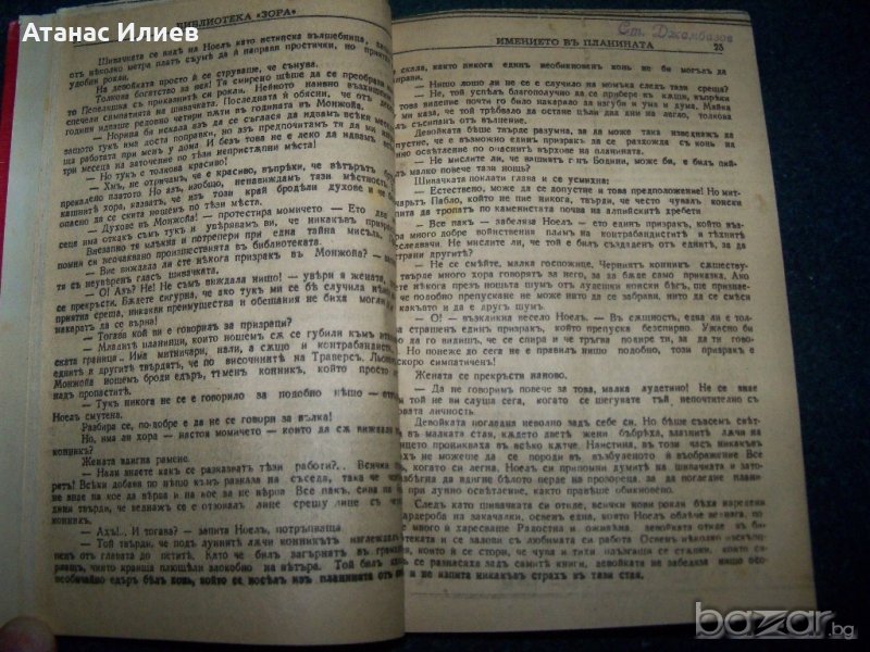 "Имението в планината" от Макс дьо Вози, вестникарски роман, изрязван и подвързан като книга с твърди корици. Романът е публикуван във вестник "Зора" преди 1944г. Книгата е 134 стр.