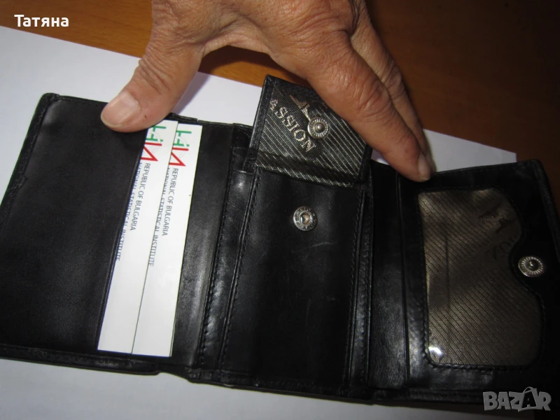 джобен формат 13/11 см и13/29 -разтворен;ТРОЙНО СГЪВАЕМ /2 разделения за книжни банкноти;МОНЕТНИК;