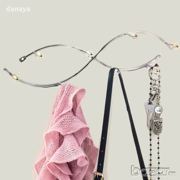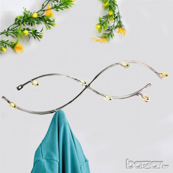 Никелирана декоративна двойна закачалка за стена с 8 куки за закачане. Прекрасен и стилен дизайн с форма на осмица. Перфектна за поставяне в антрето, в банята и на всяко друго място, където е нужно окачване на дрехи и аксесоари. Направете елегантен и подреден вашия коридор с тази красива стенна закачалка с форма на осмица. Всяка от куките за закачане е с яйцевидна форма, допринасяща за перфектния й завършек. Без опастност от нараняване или одраскване.