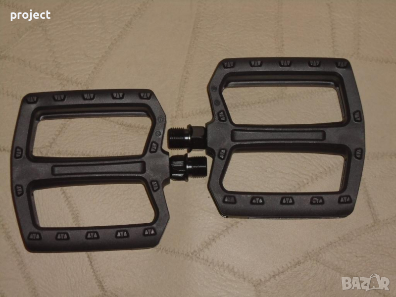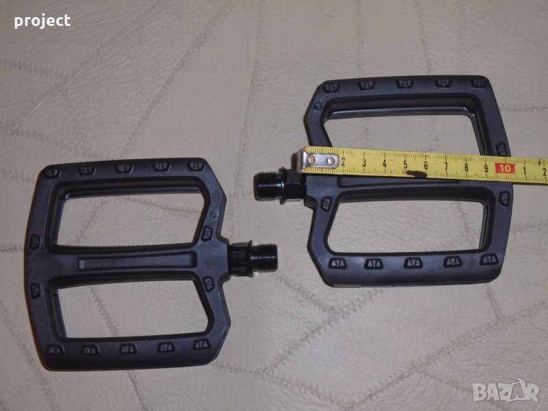 5.Нови!! педали платформи за велосипед,колело,Бмх,Bmx, downhill .Промо цена до изчерпване на количествата! цена 9.90E.Педалите са чисто нови с много хубав дизайн ,цвят черен,с вградени пинове,Tайвански.Разер 10/10/2см.Материал PVC. подходящи са за всички модели велосипеди със стандартна резба/ 14mm./