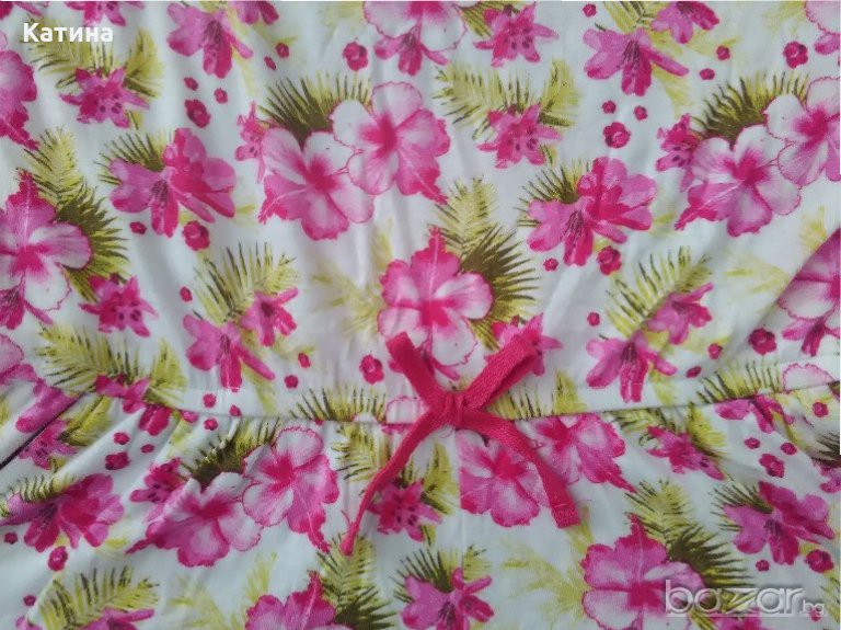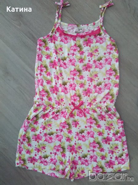 Страхотен флорален гащеризон от силно еластична материя.Ластик в талията и два функционални джоба.Размер на етикета 146-152 см,10-12 год.Нов.