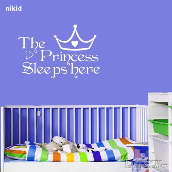 The Princess Sleeps Here стикер за принцеса с Корона стикер лепенка за стена или гардероб детска → Обява 21404552