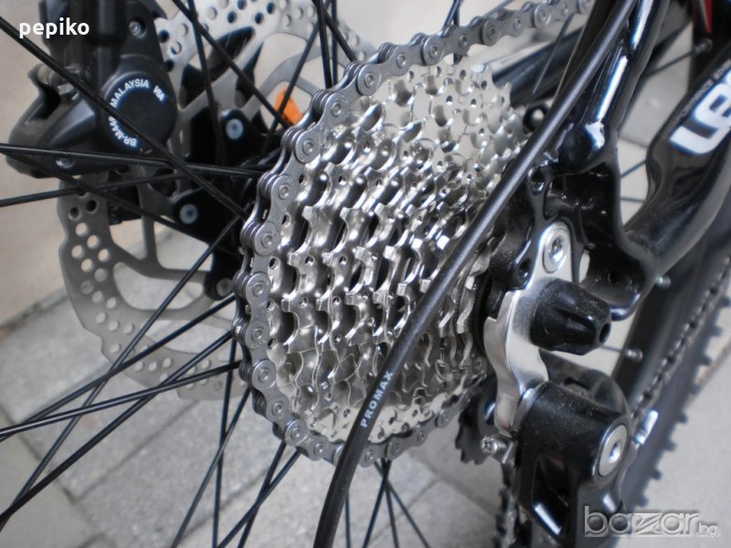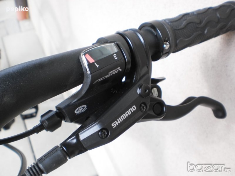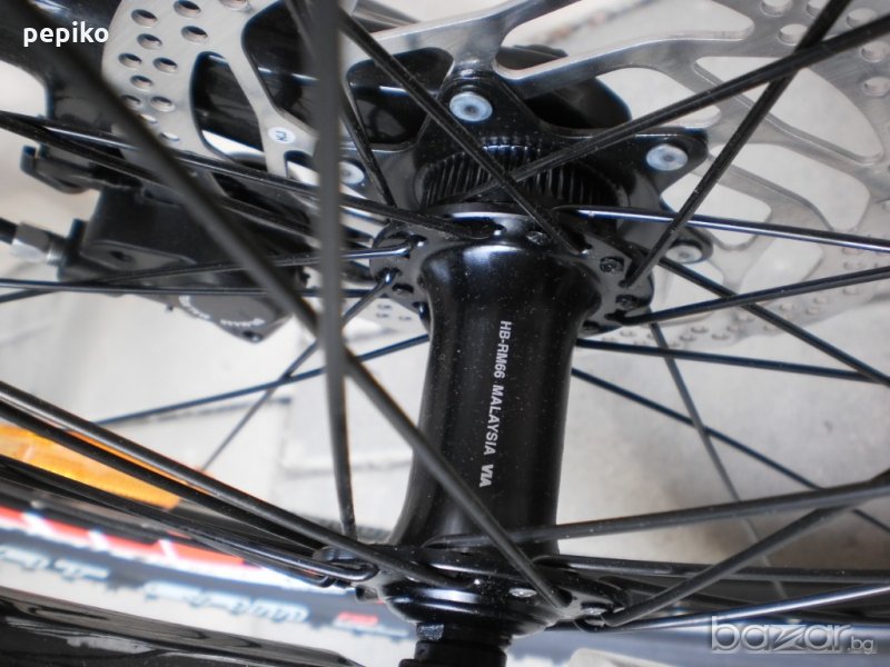 НОВ спортен МТВ велосипед STINGRRY SPORT 26 цола модел 2016г сглобен във България, супер лека алуминиева рамка алуминий 7005, 26 цола с 27 скорости специално лаково покритие върху стикерите, фиксирани превключватели SHIMANO ACERA 9 със палци, средно движение касета SHIMANO , алуминиеви курбели SHIMANO , преден отклонител SHIMANO ALIVIO, заден отклонител SHIMANO DEORE 9, задни венци касета на шлици SHIMANO FH-RM66 MALAYSIA VIA, алуминиеви двойностенни усилени капли на капси RODI RIMS, алуминиево колче на седалката TRUVATIV , алуминиева лапа TRUVATIV , алуминиево курмило TRUVATIV , удобна спортна силиконова седалка SELLE ROYAL PREMIUM DEFENDER, предна и задна алуминиеви главини с автомати шимано HB-M525 VIAM, предна и задна ХИДРАВЛИЧНИ дискови спирачки SHIMANO , преден амортисьор магнезиев алуминиев заключващ се SR SUNTOUR 100 мм ход ребаунд, , гуми с голям грайфер SCHVALBE SMART SAM 26 Х 2,2 , алуминиеви педали, подходящ за ръст 170-185см, тегло 13,9кг много бърз и лек ход невероятен велосипед лимитирана серия.