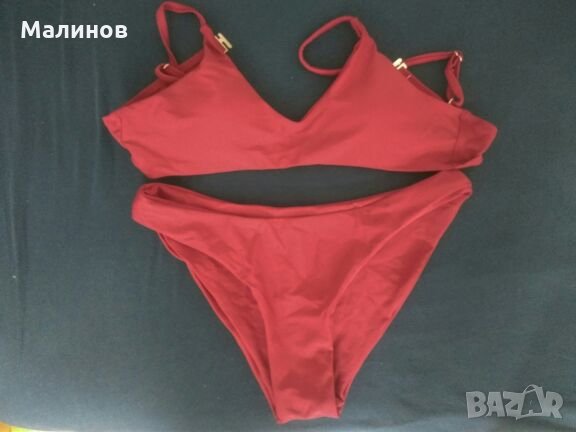 Бански от две части, наличен в бяло S размер или бледо розово или черно с прашка М размер, или с бикини, цвят бордо - М размер с бикини, черен - Л размер с бикини. Много мека и удобна, непрозрачна материя.