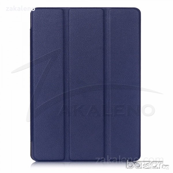 Висок клас кожени смарт калъфи с магнитно затваряне и прегъваща се предна част с функция стойка, както е показано на снимките. Външната част е изработена от качествена изкуствена кожа, а отвътре са покрити с мека подплата от велур. Кожата е приятна на допир, а същевременно достатъчно здрава и лесна за почистване. В задната си част калъфите са със здрав пластмасов гръб - идеална отливка на таблета, в който той перфектно ляга, без да се драска корпуса или да бъде под напрежение. Захващането е достатъчно здраво, няма вероятност от случайно изпадане на таблета. Пластмасата е устойчива и не се чупи или рони, както при повечето евтини калъфи. Имат всички необходими функционални отвори.