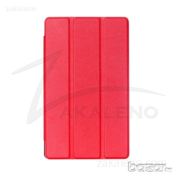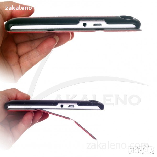 Висок клас кожени смарт калъфи с магнитно затваряне и прегъваща се предна част с функция стойка, както е показано на снимките. Външната част е изработена от качествена изкуствена кожа, а отвътре са покрити с мека подплата от велур. Кожата е приятна на допир, а същевременно достатъчно здрава и лесна за почистване. В задната си част калъфите са със здрав пластмасов гръб - идеална отливка на таблета, в който той перфектно ляга, без да се драска корпуса или да бъде под напрежение. Захващането е достатъчно здраво, няма вероятност от случайно изпадане на таблета. Пластмасата е устойчива и не се чупи или рони, както при повечето евтини калъфи. Имат всички необходими функционални отвори.
