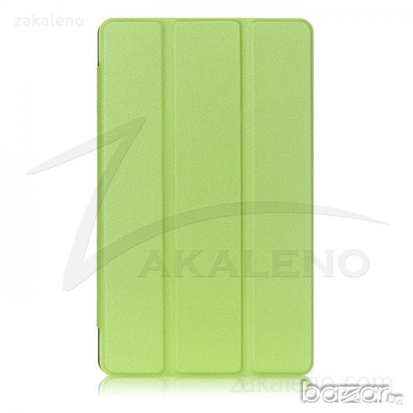 Висок клас кожени смарт калъфи с магнитно затваряне и прегъваща се предна част с функция стойка, както е показано на снимките. Външната част е изработена от качествена изкуствена кожа, а отвътре са покрити с мека подплата от велур. Кожата е приятна на допир, а същевременно достатъчно здрава и лесна за почистване. В задната си част калъфите са със здрав пластмасов гръб - идеална отливка на таблета, в който той перфектно ляга, без да се драска корпуса или да бъде под напрежение. Захващането е достатъчно здраво, няма вероятност от случайно изпадане на таблета. Пластмасата е устойчива и не се чупи или рони, както при повечето евтини калъфи. Имат всички необходими функционални отвори.