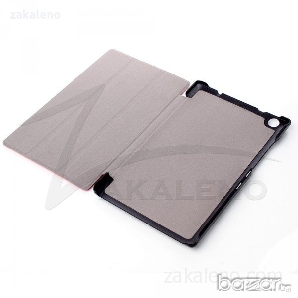 Висок клас кожени смарт калъфи с магнитно затваряне и прегъваща се предна част с функция стойка, както е показано на снимките. Външната част е изработена от качествена изкуствена кожа, а отвътре са покрити с мека подплата от велур. Кожата е приятна на допир, а същевременно достатъчно здрава и лесна за почистване. В задната си част калъфите са със здрав пластмасов гръб - идеална отливка на таблета, в който той перфектно ляга, без да се драска корпуса или да бъде под напрежение. Захващането е достатъчно здраво, няма вероятност от случайно изпадане на таблета. Пластмасата е устойчива и не се чупи или рони, както при повечето евтини калъфи. Имат всички необходими функционални отвори.