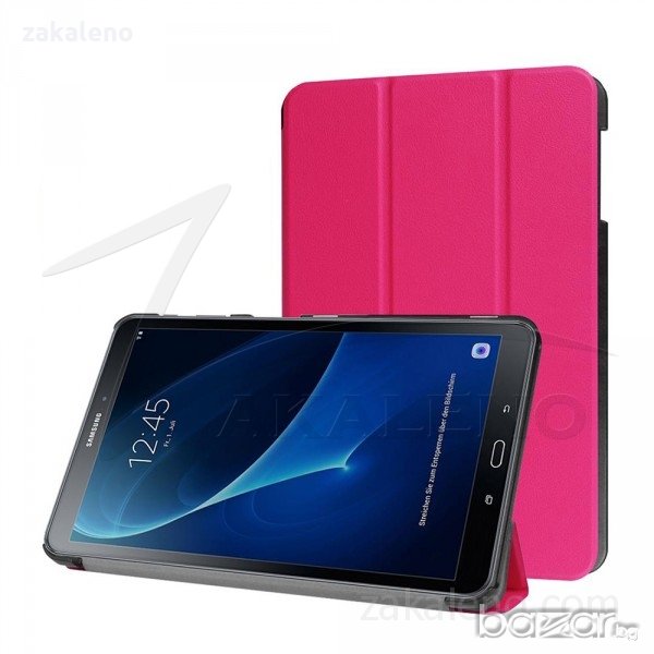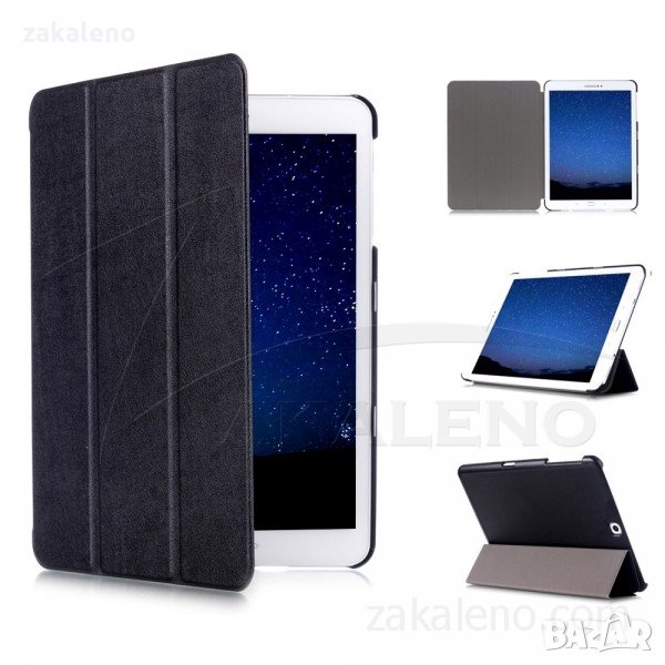 Висок клас кожени смарт калъфи с магнитно затваряне и прегъваща се предна част с функция стойка, както е показано на снимките. Външната част е изработена от качествена изкуствена кожа, а отвътре са покрити с мека подплата от велур. Кожата е приятна на допир, а същевременно достатъчно здрава и лесна за почистване. В задната си част калъфите са със здрав пластмасов гръб - идеална отливка на таблета, в който той перфектно ляга, без да се драска корпуса или да бъде под напрежение. Захващането е достатъчно здраво, няма вероятност от случайно изпадане на таблета. Пластмасата е устойчива и не се чупи или рони, както при повечето евтини калъфи. Имат всички необходими функционални отвори.