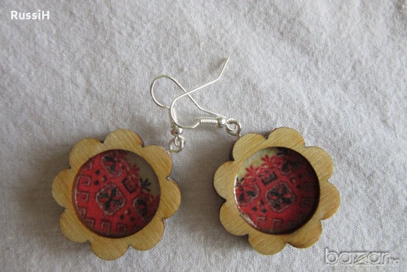 Дървени бижута с българска шевица , правени с техника декупаж.