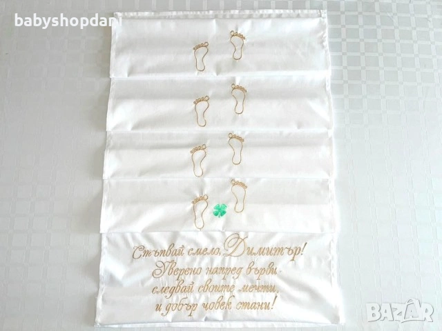 Размери: 45х150 см / С бродерия 8 стъпки и стихче/примерно/: