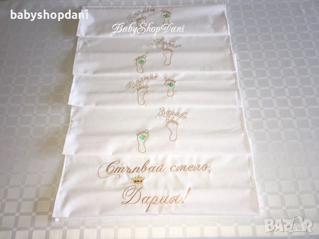 С бродерия текст ’Стъпвай смело,+Име!’ + 8 стъпки +