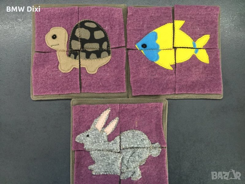 Детска развлекателна тиха книга-пъзел. С цифрите от 1 до 9, различни животни. Картинките са направени като пъзел за подреждане. Ръчна изработка. Книжките могат да бъдат изработени и по ваш модел и желание. Моля, разгледайте и останалите ни обяви.