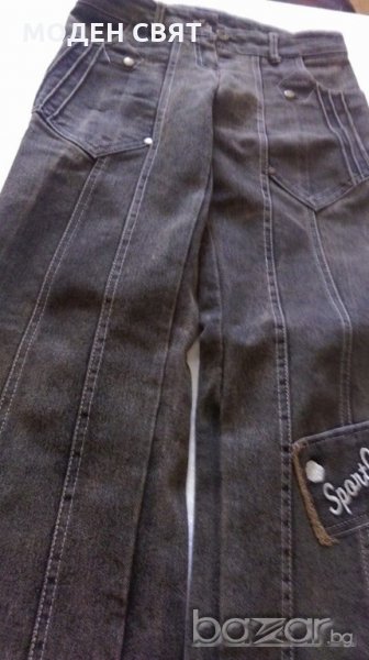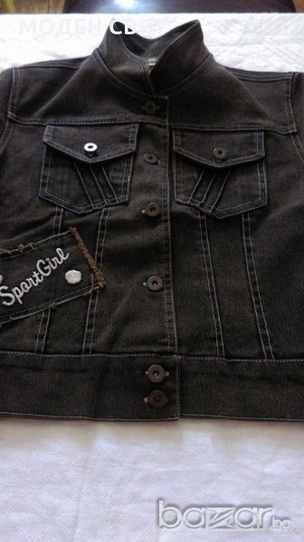 Комплектът е от дънки и дънково яке-№XS.Подходящ за дете до 150 см. Облякох го 1 път,отрязах дънките и понеже ги направих много къси го продавам.Забележката на комплекта е ,че дънките са подгъвани и отшита гайка отзад /показано е на снимката/.