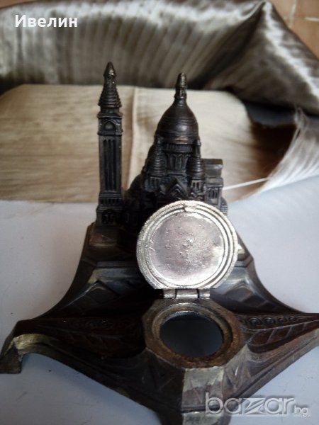 стара мастилница от цветен метал.висока е 11см,широка 14см,дълбика 11см,налична маркировка.внос от франция.