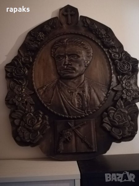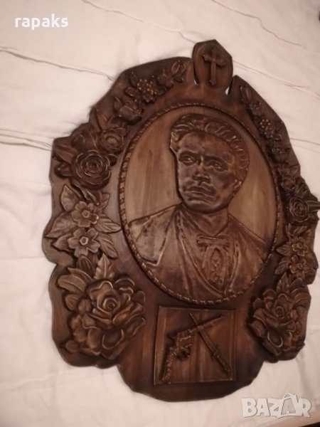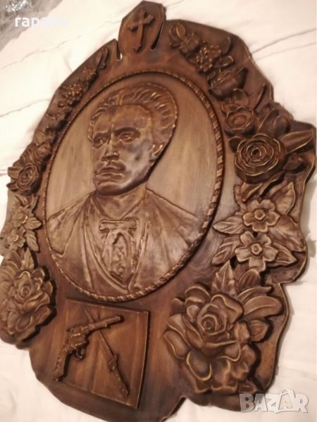 дърворезба с лик Апостолът на свободата - Васил Иванов Кунчев - ЛЕВСКИ. Размери 65 на 75 см, а материалът е липа. Продавам и друга качествена дърворезба -националният герб на Р България; както и десетки различни оръжия реплики и обезопасени военни класики, подходящи за украса на етнокътове, мъжки бърлоги, камини, стени и механи. Разгледайте и другите ми обяви, в тях всеки артикул си има своята цена.