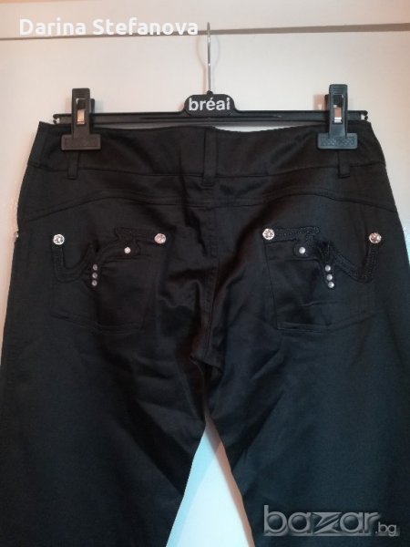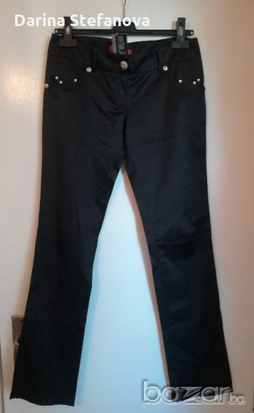 Нов черен сатенен панталон с акцент камъни по джобовете.Стои страхотно.