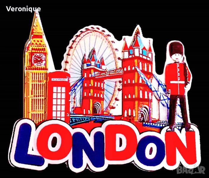 34. Магнит Лондон, Великобритания/ Тауър Бридж и часовниковата кула Биг Бен; 6.5 x 5.4 cm -12 лв