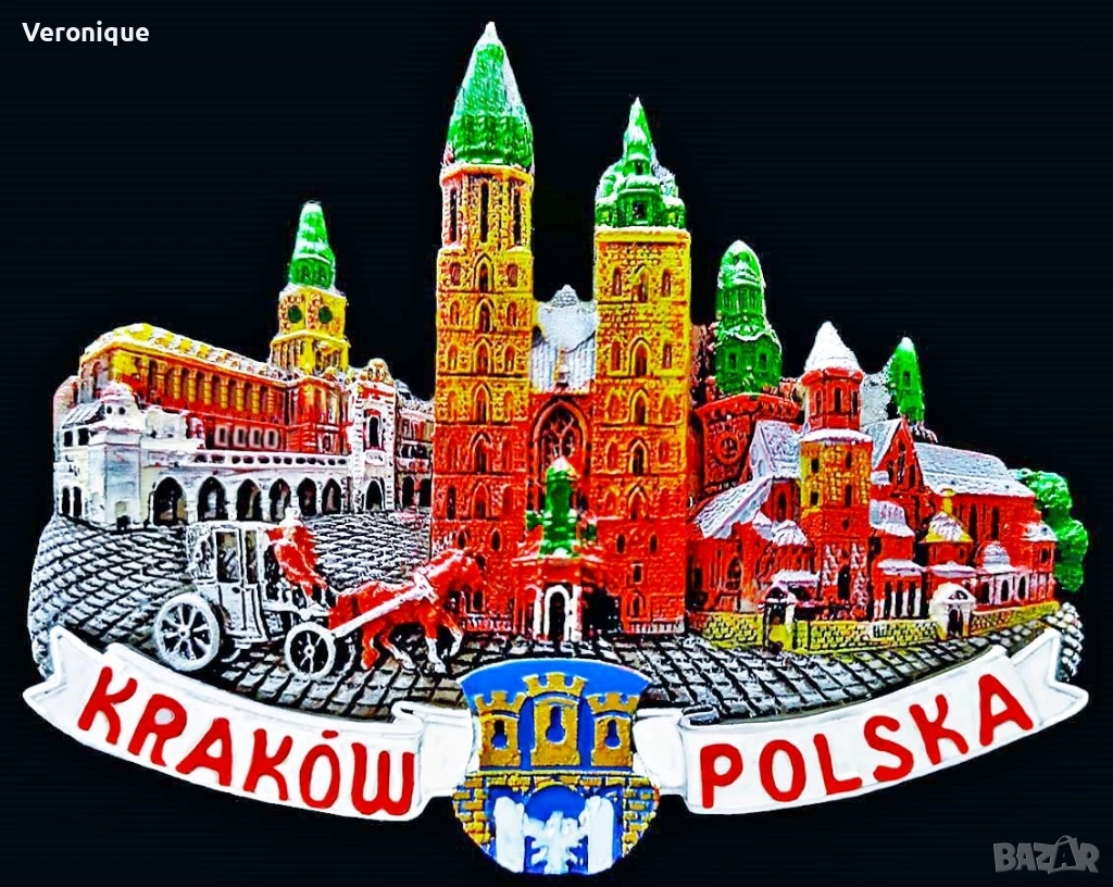11. Магнит Краков,Полша/ Кралският дворец Вавел, централният площад Market Square; Базиликата на Св. Петър и Павел;7.7 x 5.9 cm - 12 лв