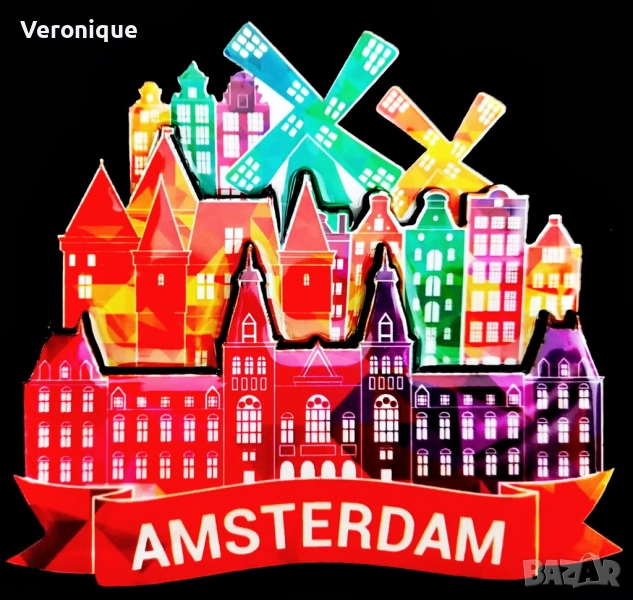6. Магнит Амстердам, Нидерландия / изглед от каналите Singel, Herengrach с вятърна мелница; 8.9 x 7.8 cm – 12 лв