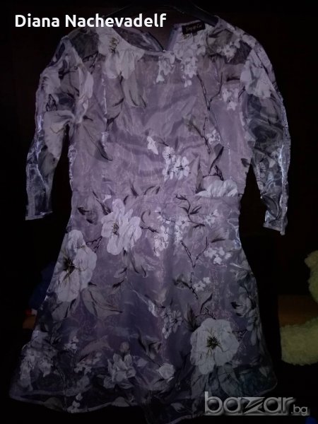 чисто нова сива рокля на цветя ,Официална с дълъг ръкав и с подплата,Размер С-М
