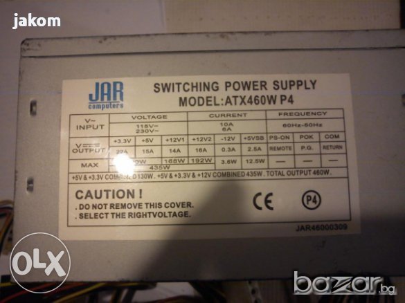 3. Продавам захранване JAR 400W, P4, 24 pin, В перфектно състояние.
