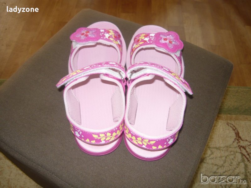 Красиви сандалки , обувани един единствен път . Закупени от Англия . 24 см . е цялата дължина . 22.5 см . e стелката ( то не e точно стелка , а по скоро е направено като ограничение ).
