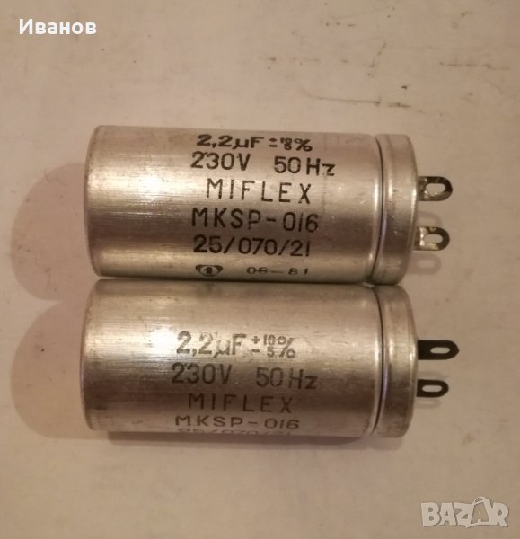 Кондензаторите от първата снимка са 8мкф/400В около 20 броя, 4 лв/ бр, свършиха се/ ако има мераклии, мога да намеря от колеги но сигурно цената ще е друга/. Кондензаторите от втора снимка са по десетина от вид по 4 лв/ бр. На трета са по десетина от вид по 3 лв/ бр. На четвърта са Miflex и са нови. Десетина по 3 лв/ бр. На пета по десетина от вид по 1лв/ бр. На последната са без пари, единични бройки са......Кондензаторите от последната снимка ги взеха....