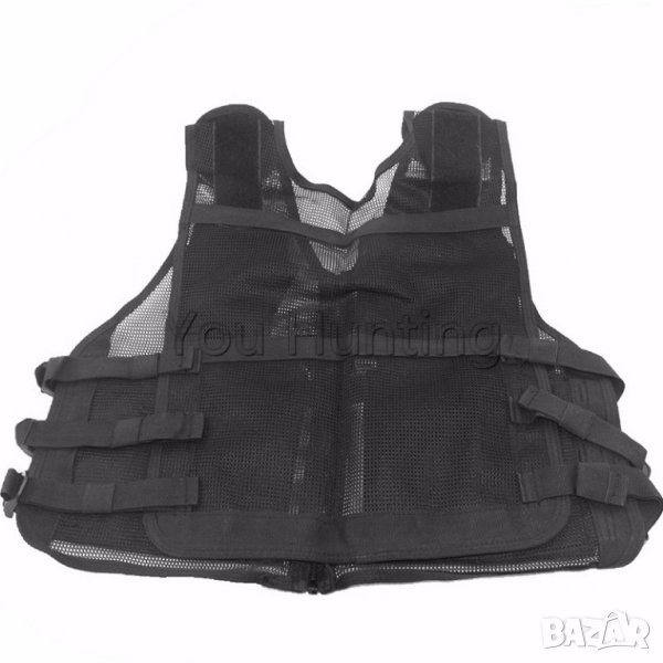 Тактически военна (полицейска) жилетка универсален размер (може да се променя на височина и доста на ширина), направена от изключително здрава, удобна и дълготрайна полиестерна, олекотена (много подходяща за ползване и през горещите летни дни) материя. Подходяща също за лов, риболов, къмпингуване, пейнтбол и др.
