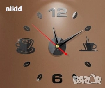 Черен огледален чаши чаша зърна кафе стенен часовник атрактивен дизайн кухня кафене заведение стена → Обява 21492509