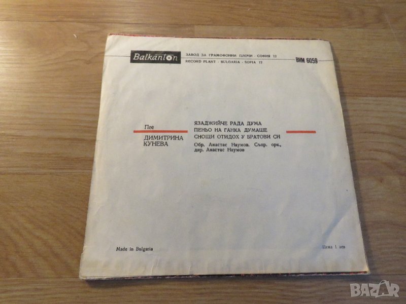 Малка плоча - пее Димитрина Кунева - народна музика - издание 80те години → Обява 21501590