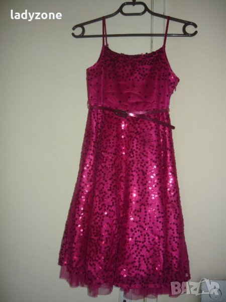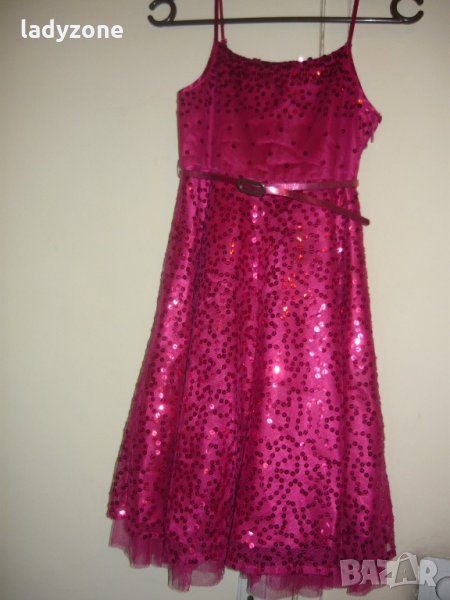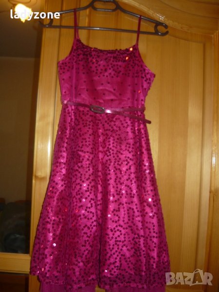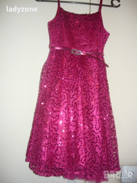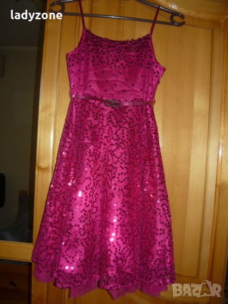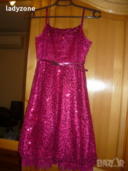 маркова рокля . материята е 100 % полиестер . закупена от Англия . обличана един единствен път . по етикет е за 9 години .