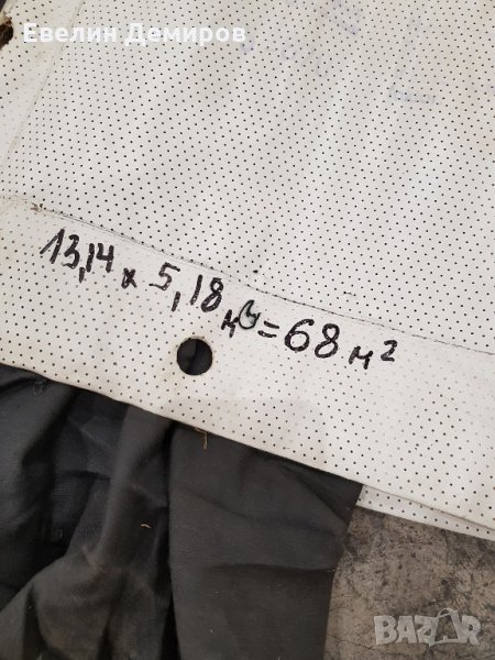 Прожекционен екран за киносалон с размер 13.14 м. x 5.18 м. = 68 кв.м. Екрана е свален при преустройство от зала за кинопрожекции с 550 места приблизително 650 кв. м. Екрана е в много добро състояние с дребни наранявания. Екрана е произведен от немска фирма. Окачването е по стандартния начин с тръба и обтегачи.