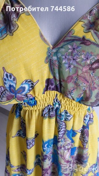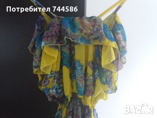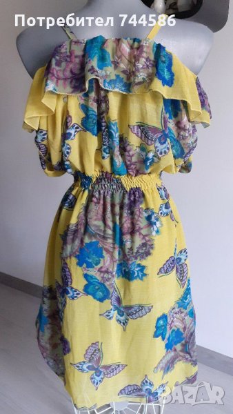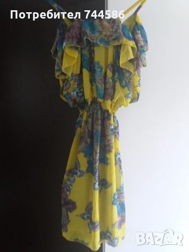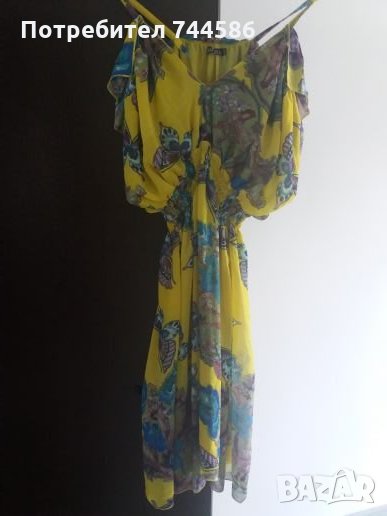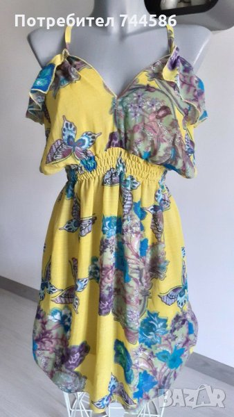 Роклята е чисто нова,лека и ефирна.Купена е за повод,но така или иначе не се състоя.Отговаря за М,става и за С,а може би и за Л.Интересен модел с набран набор ластик под гърдите.С подплата в долната част и под сутиена.Дължина 80 см,до коляното някъде,презрамките може да се крият и да е тип лодка роклята в горната част.При интерес пишете за повече инфо.Доставката със Спиди е най-евтина около 5,00 лв.
