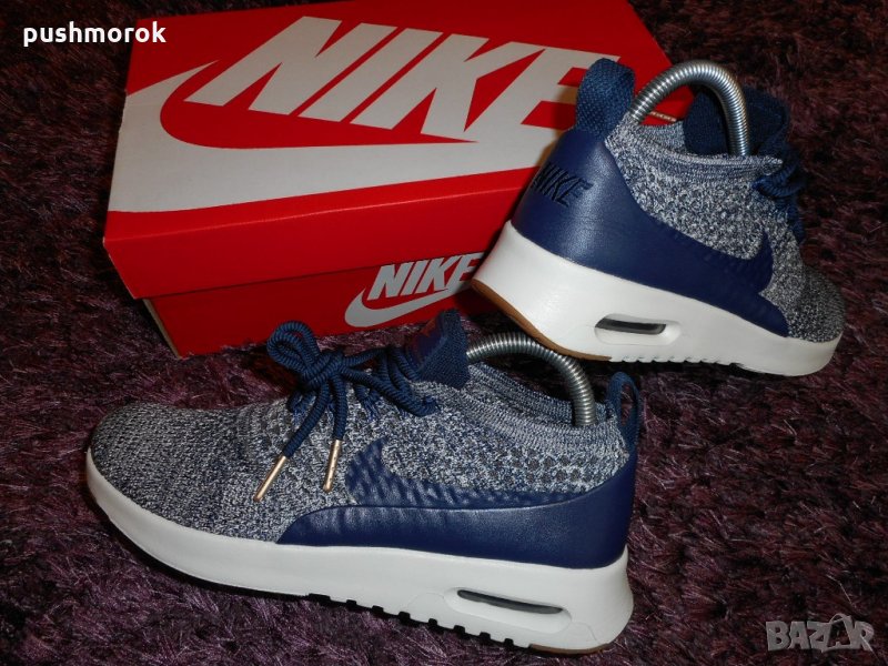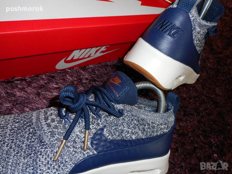 Ultra Flyknit се излива в целевите зони, за да се намали теглото, без да се жертва трайността. Той се комбинира със системата в петата Max Air за отлично уплътняване.