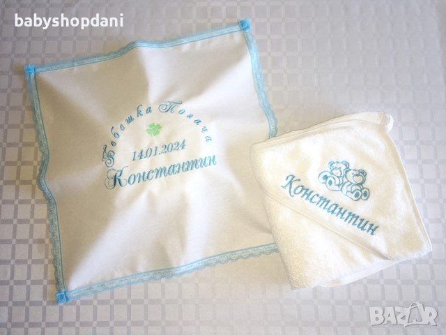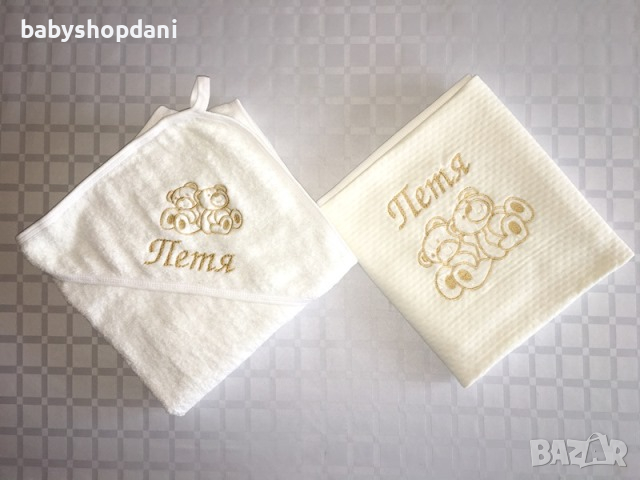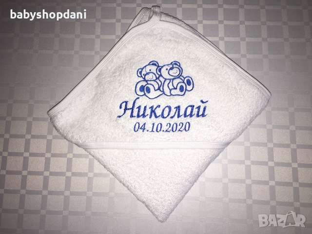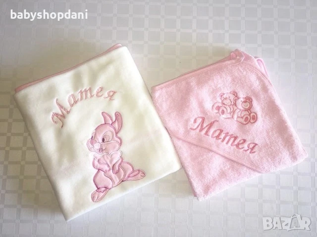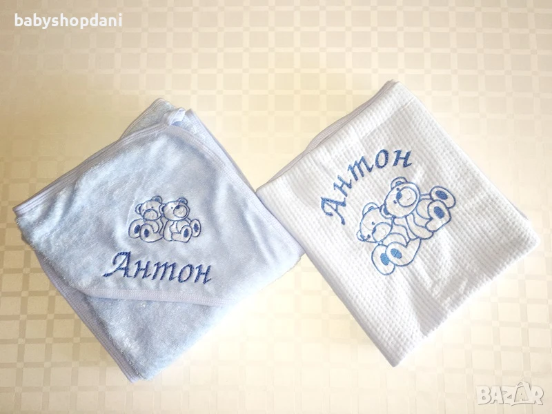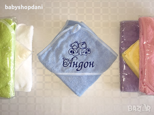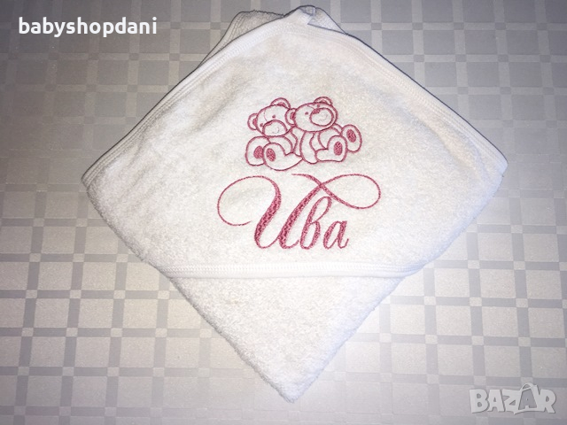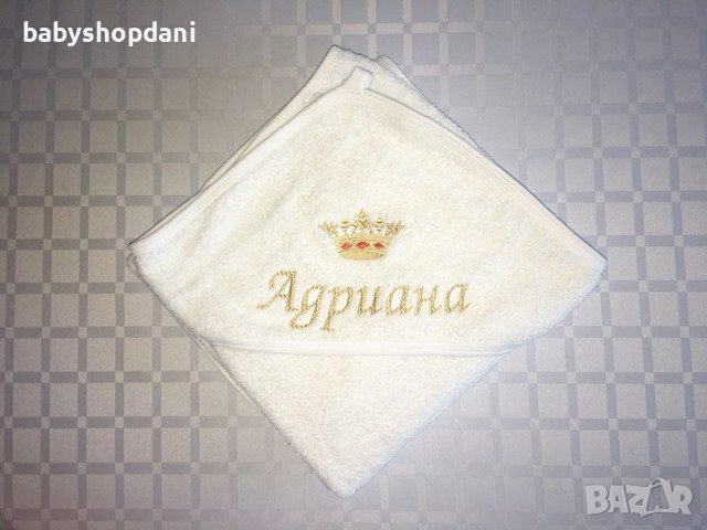 Бебешка ХАВЛИЯ за БЕБЕ с качулка, име/на, надписи персонализирани с БРОДЕРИЯ