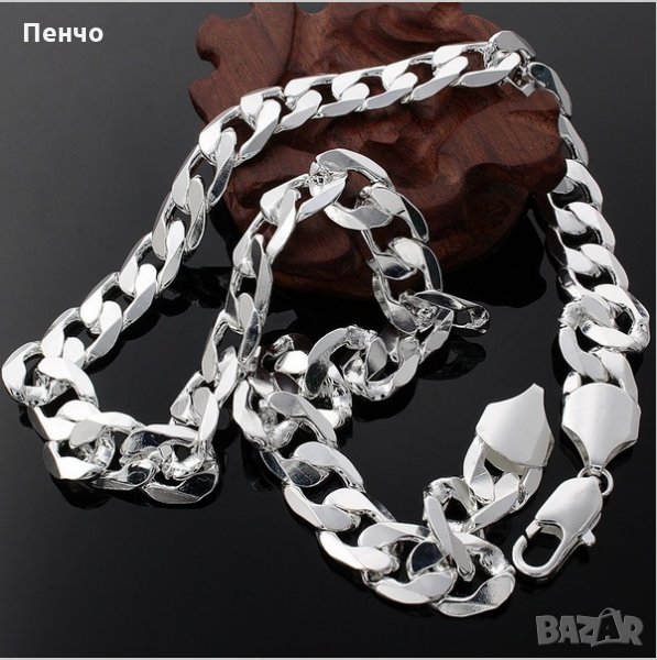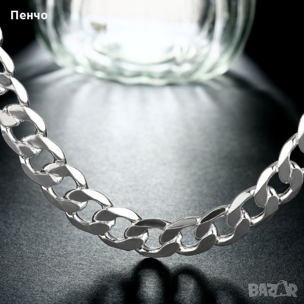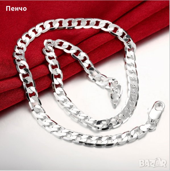 Сребърен ланец посребрен ланче колие сребърна бижутерия ширина 4 мм 51 см дължина