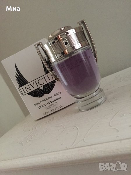 Мъжки тестер Paco Rabanne INVICTUS 100ml. INVICTUS е един от желаните мъжки парфюми на Paco Rabanne, означава непобедим, самият аромат е много дързък и наситен. Парфюмът е проектиран като статуетка, която получават победителите. Парфюмът съчетава както морски, така и дървесни елементи в базата си. За да се обогати към аромата е добавено пачули и дафинов лист. Парфюмът на истинският мъж!