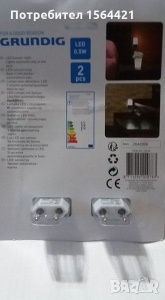 сензорни Led автоматични лампи Grundig, немски 2 бр. Внос от Германия. Активират се автоматично при липса на светлина. Мощност 0,5 W, напрежение 230 V / 50 Hz. Включват се директно в контакта. Комплектът се състои от 2 бр. лампи. Размер на лампата 11,5см х 5,5 см