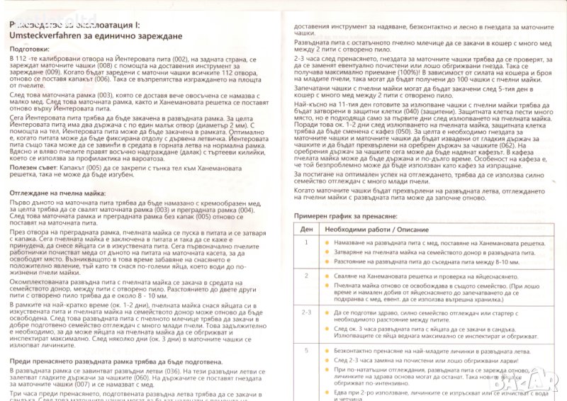 Маточният кладенец с приставната клетка се натиска върху клетъчния носител, който е залепен в развъдната летва. Най-късно до 11-ия ден маточните клетки, които са готови за излюпване, трябва да бъдат обучени (защитени) в защитни клетки (арт. № 040).