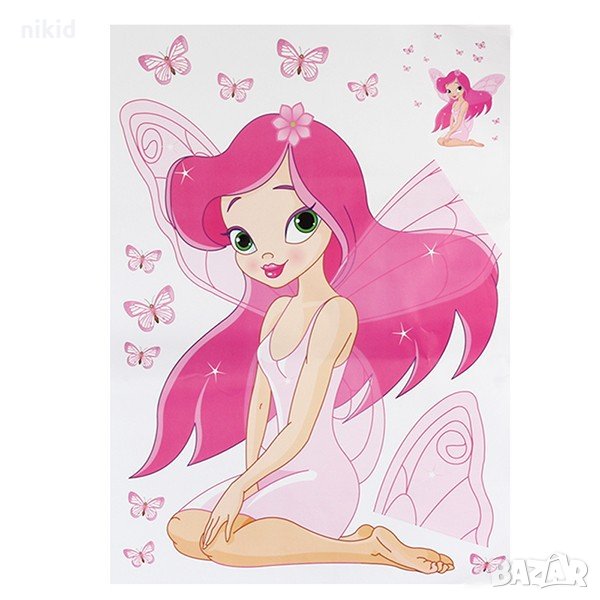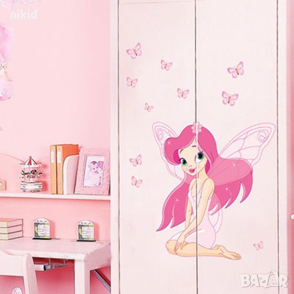 Голяма розова фея пеперуда стикер лепенка за стена за детска стая и мебел → Обява 21556426