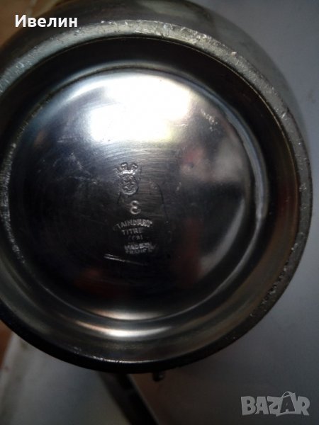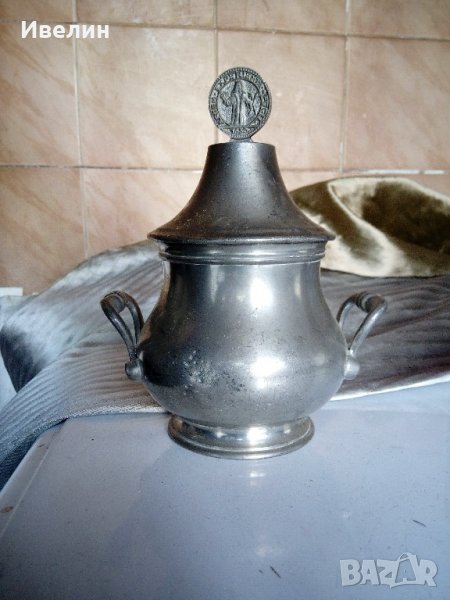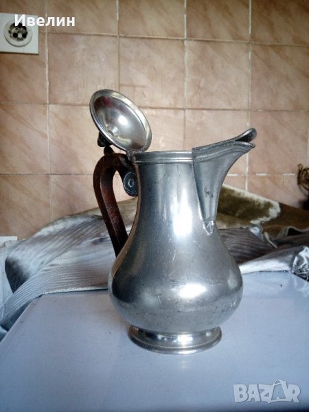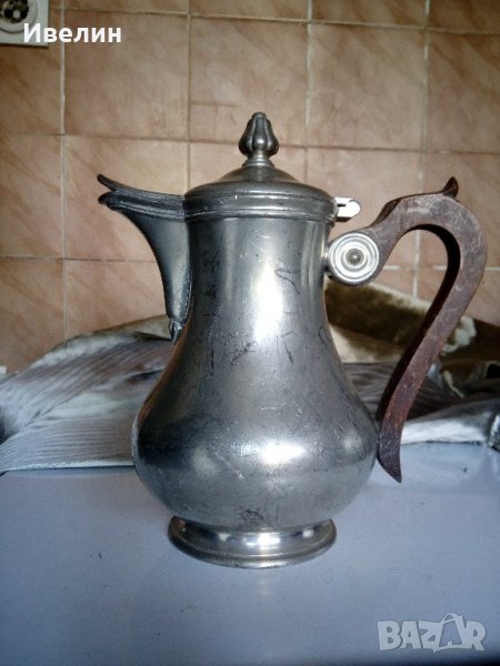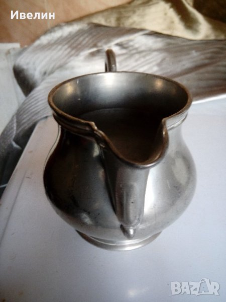 стар бароков сервиз от цинково калаена сплав.височни на каната 22см,на захарницата 18см,на каничката за мляко 10см,маркировки на дъното.внос от франция.