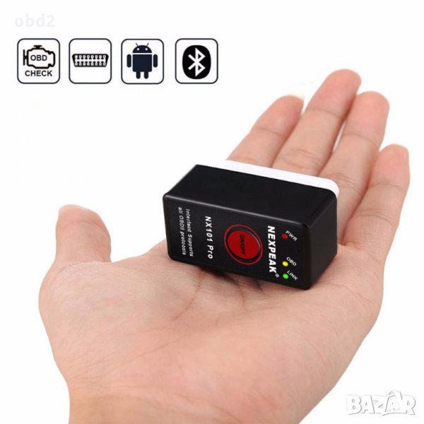 Bluetooth ELM327 с оn/off бутон, за автодиагностика с Android, Symbian и др. за всички автомобили с протокол OBD II Ако Ви светне някоя лампичка на автомобила и да не знаете за какво е? Всеки път за изчистване на някоя грешка в компютъра на колата майстора да ви иска 20 лева? Нужно ли е това да продължава? . Това което ние Ви предлагаме е устройство, което се поставя в буксата към компютъра на автомобила ви (там където майстора го връзва) и чете в реално време данните от него. Данните от своя страна се показват на компютър или смартфон (с андроид), на който предварително сте инсталирали програмката, която ще ви дадем. Най-хубавото е, че няма никакви кабели! Всичките данни се предават през BLUETOOTH. Имате възможността да откривате неизправности по автомобила, да изтривате натрупани грешки, да следите в реално време данните от автомобила (броят сензори е различен при различните автомобили). Може да имате моментен достъп до оборотите на двигателя, скороста на автомобила, среден и моментен разход на гориво, средна скорост, изминато растояние, температура на маслото, температура на двигателя, оставащите километри до свършване на горивото, моментна мощност на автомобила (в HP) и още много много други. Ако сте с по-модерен автомобил дори бихте могли да си запалвате и изгасвате автомобила, без дори да сте в него, посредством своя смартфон (гледайте да сте изключили от скорост :D). Самото устройство е съвместимо с всички автомобили, които поддържат OBD2 стандарт (вижте черно-бялата снимка. Трябва да имате такава букса в автомобила). Това са всички автомобили след 2000' с много малко изключения, както и много автомобили след 1996'. Тук може да проверите дали е тестван на вашия автомобил: http://elm327.ucoz.ru/news/elm327toyota/2010-08-24-1
