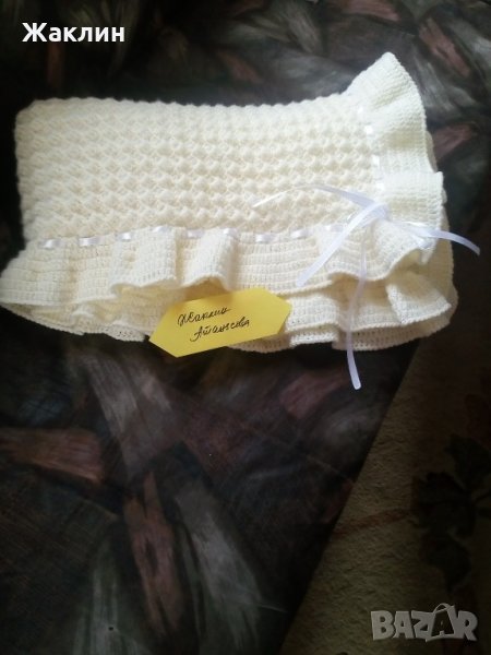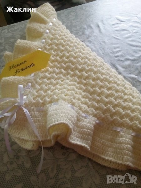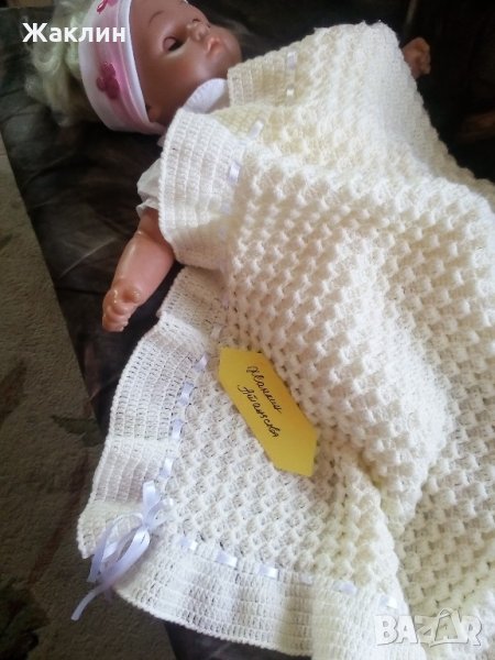 Плетена пелена за изписване на новородени бебета. Пелената е изработена от 100% акрил, който не предизвиква алергии.