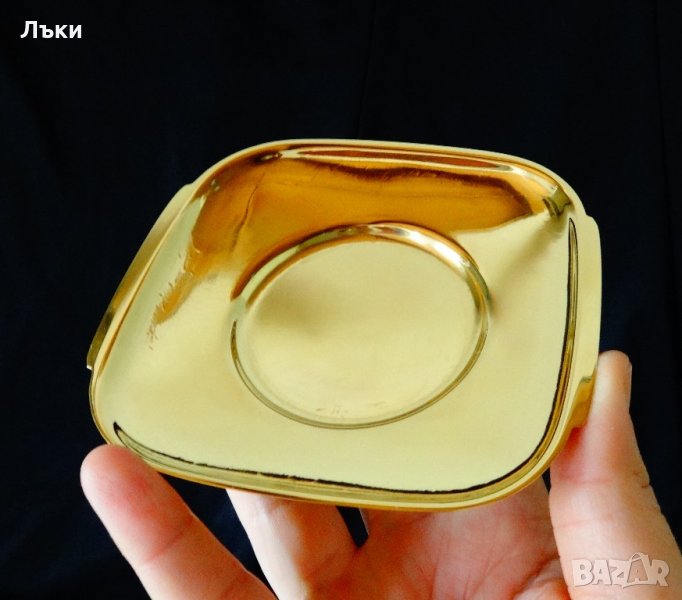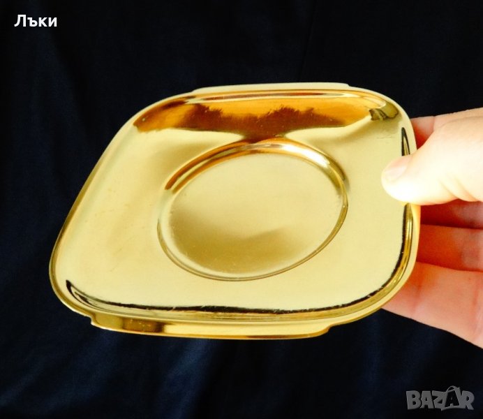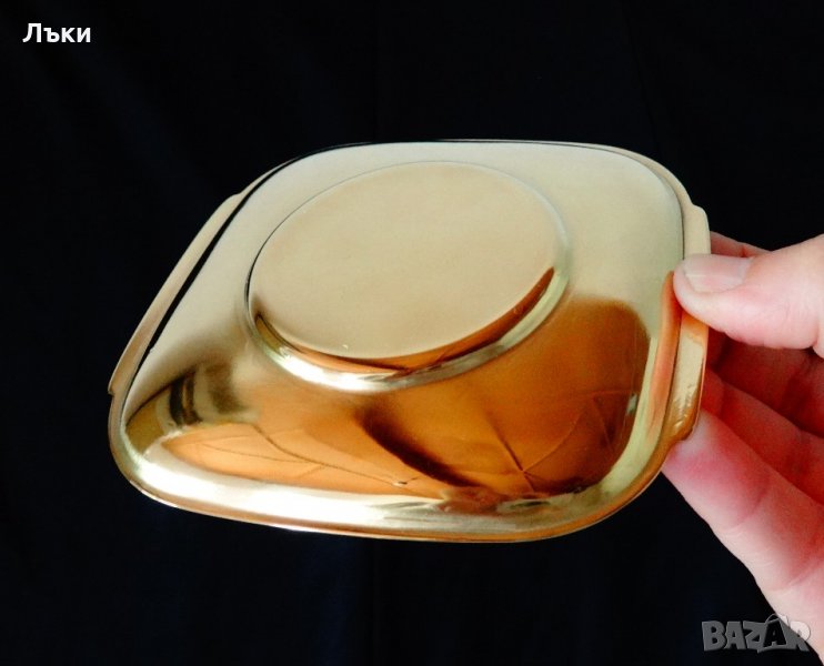 мен,чинията е като златно огледало.Височина 1.5 см.,дължина 11 см.,ширина 10.5